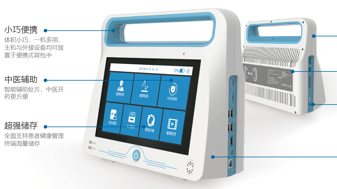 支持智能監(jiān)測(cè)設(shè)備接入,進(jìn)行數(shù)據(jù)的長(zhǎng)期追蹤、分析與評(píng)估。數(shù)據(jù)按及地方標(biāo)準(zhǔn)建立,內(nèi)置中醫(yī)體質(zhì)辨識(shí),醫(yī)生可現(xiàn)場(chǎng)分析中醫(yī)體質(zhì)。